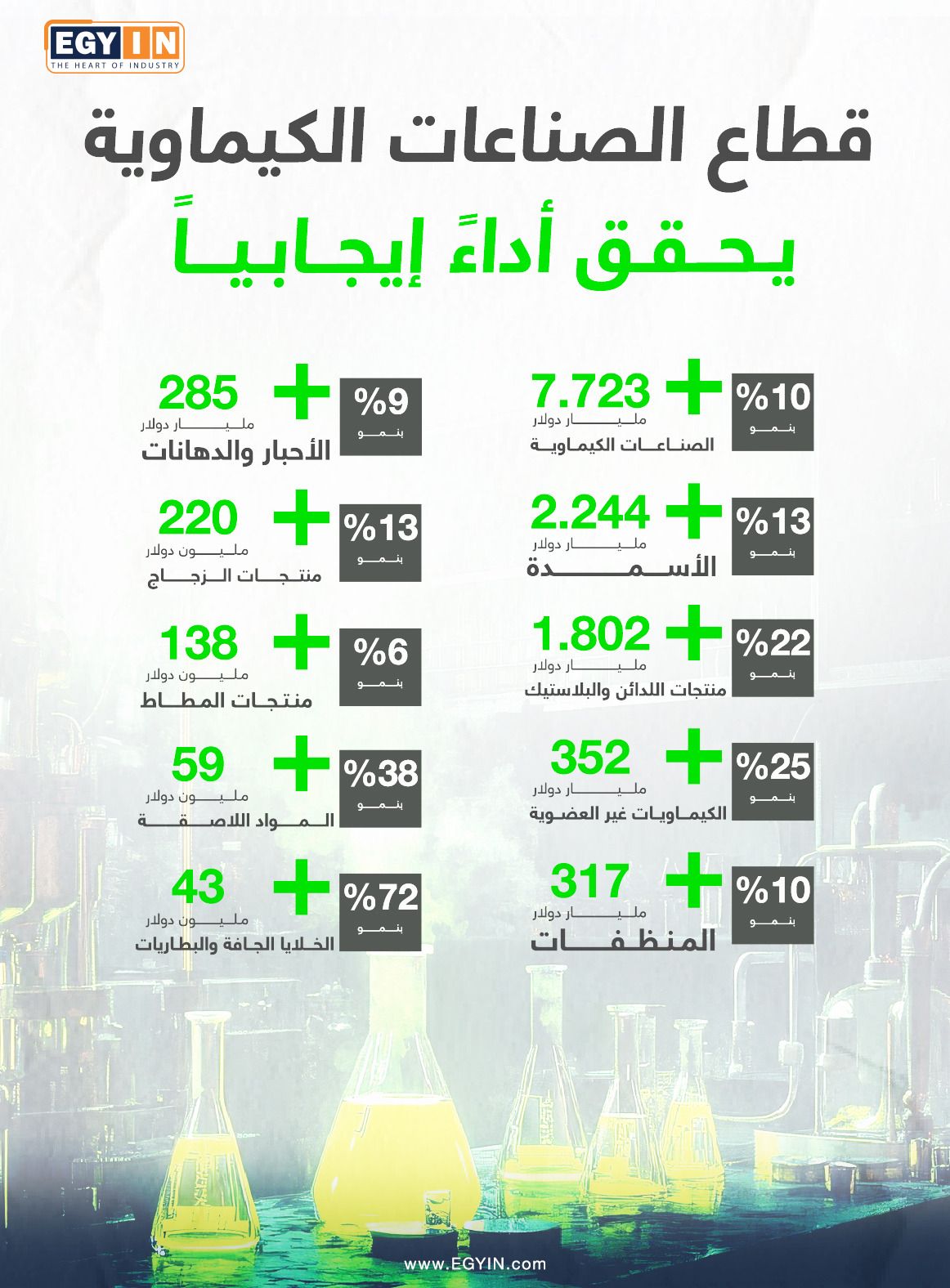 7.723 مليار دولار قيمة صادرات الصناعات الكيماوية بنمو 10%