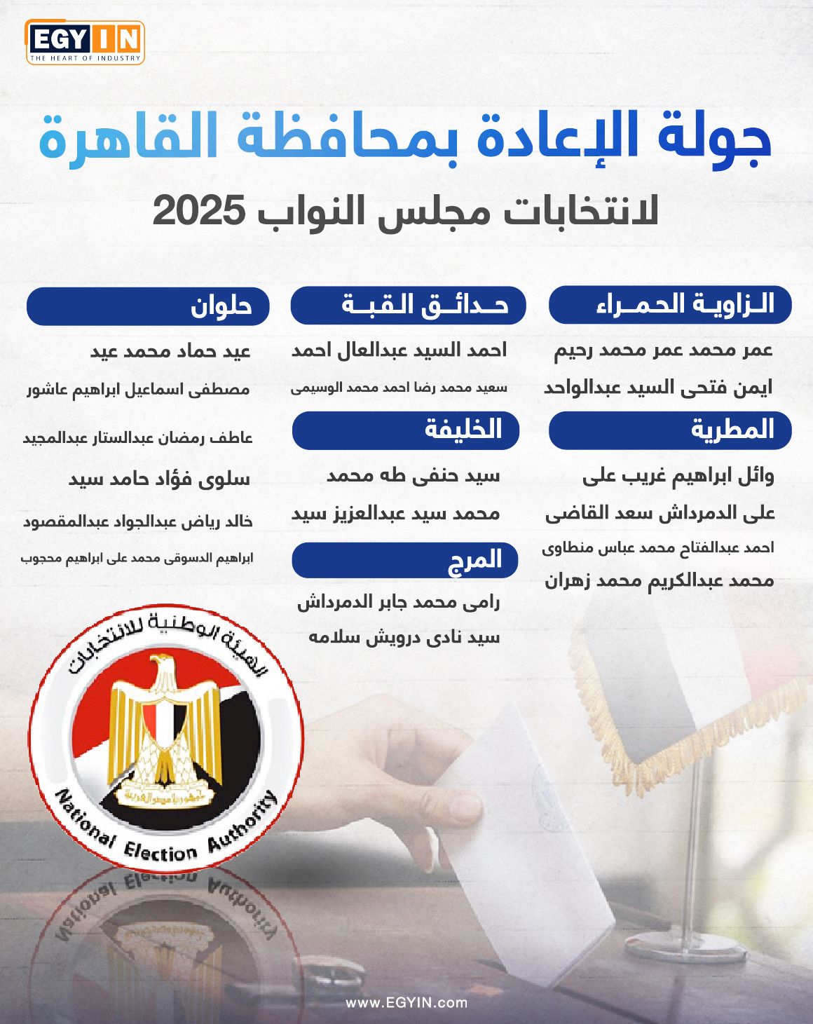 غدًا، جولة الإعادة بالمرحلة الثانية لانتخابات النواب 2025.. قائمة بكافة الدوائر
