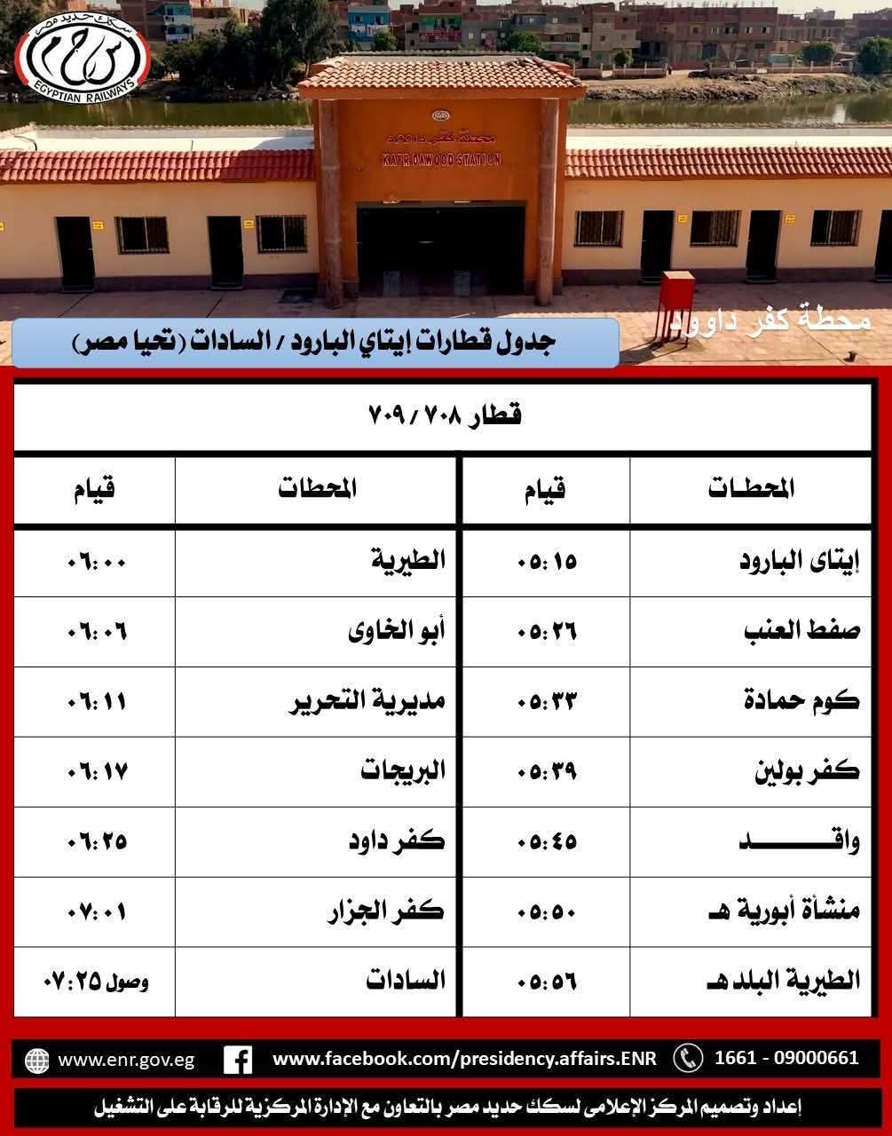 أعلنت الهيئة القومية لسكك حديد مصر، إطلاق جداول مواعيد محدثة لقطارات الخطوط الفرعية في الدلتا، بهدف تسهيل حركة الركاب بين المناطق الريفية والمدن الرئيسية، وسط جهود الحكومة لتحسين الخدمات النقلية ودعم التنمية المحلية، يشمل الجدول الجديد خطوط إيتاي البارود - كفرداود - السادات والعكس، بالإضافة إلى خط بشتيل - كفرداود - السادات والعكس.