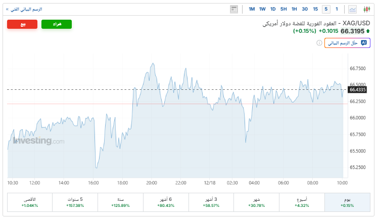 الفضة تقفز مجدداً اليوم الخميس 18 ديسمبر فوق مستوى 66 دولار للأونصة