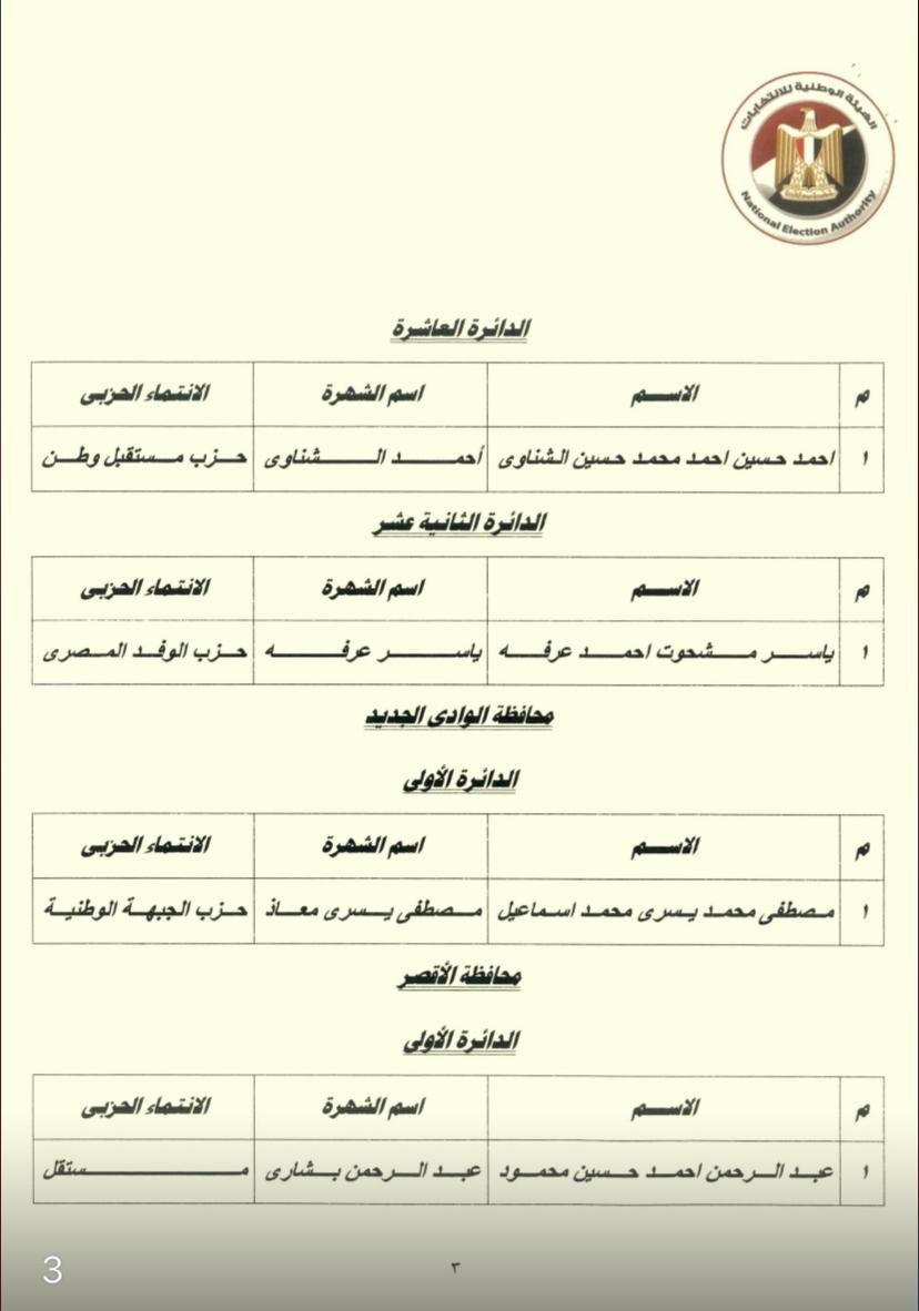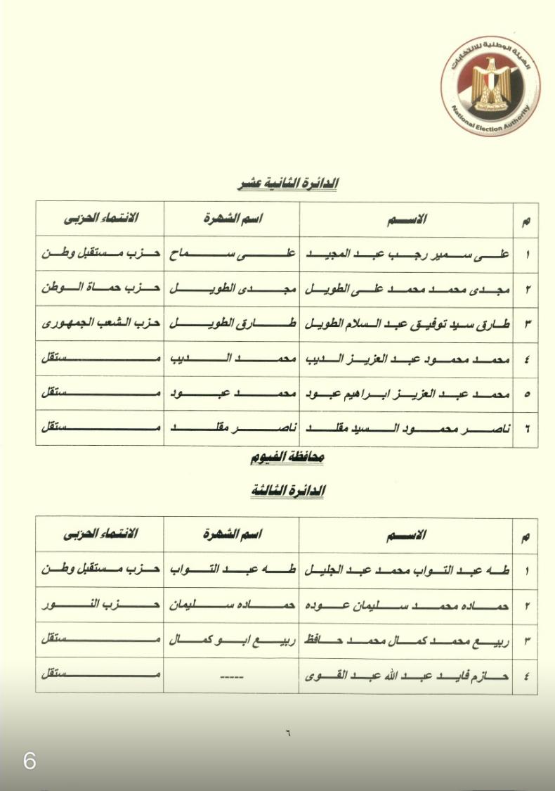 ننشر أسماء الفائزين في الدوائر الـ30 الملغاة بالمرحلة الأولى لانتخابات مجلس النواب 2025