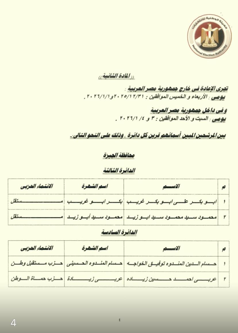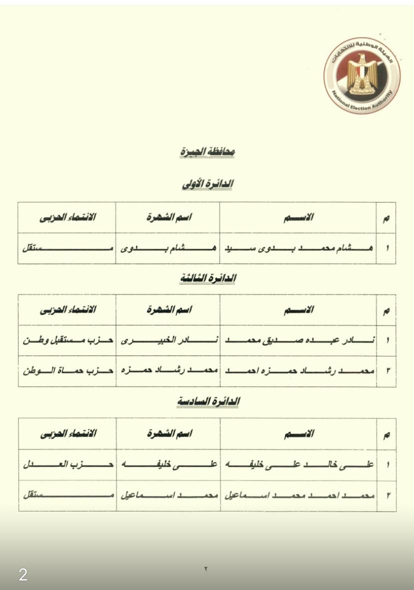 نتيجة انتخابات الدائرة الثالثة في محافظة الجيزة