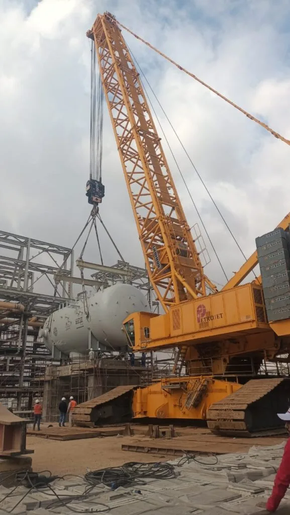 الجهاز الضخم بوزن 350 طنًا الذي تم رفعه باستخدام “الونش العملاق” بحمولة 1200 طن التابع لشركة بتروجت