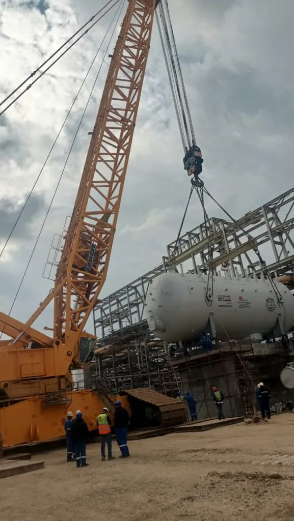 تمثّل الإنجاز في رفع وتركيب جهاز ضخم يزن 350 طنًا باستخدام “الونش العملاق” بحمولة 1200 طن، مع الالتزام التام بإجراءات السلامة والأمن لضمان دقة التنفيذ وسلامة الموقع.