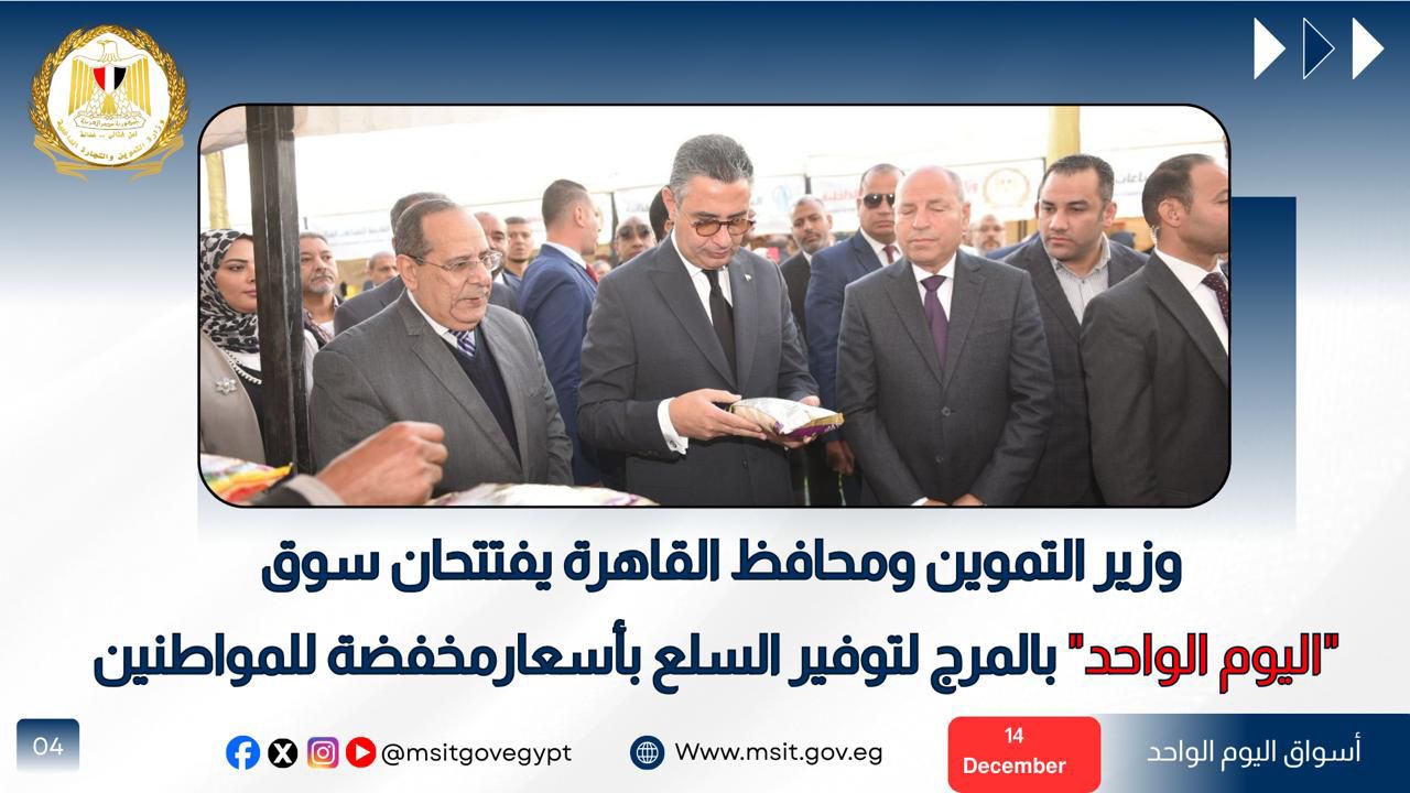 وأكد الوزير أن الوزارة مستمرة في التوسع في أسواق اليوم الواحد والمنافذ المتنقلة لضخ المزيد من السلع بأسعار مخفضة في مختلف المحافظات.