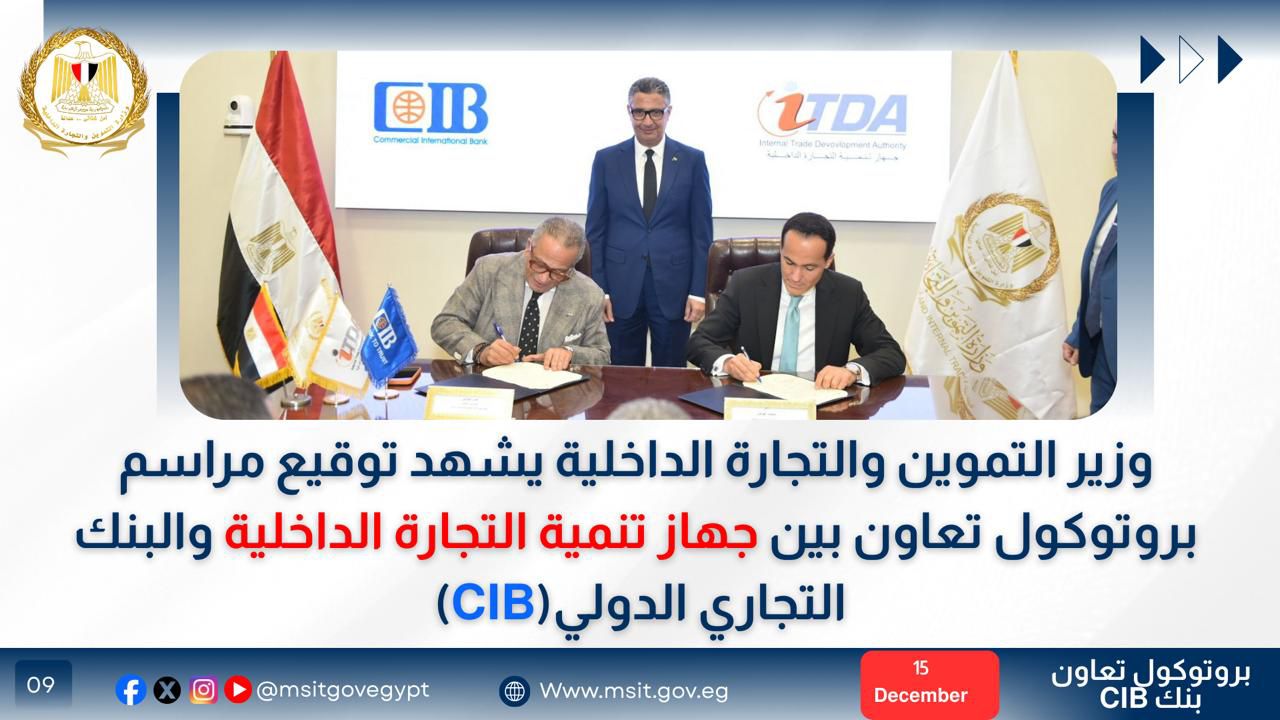 شهد الدكتور شريف فاروق مراسم توقيع بروتوكول تعاون بين جهاز تنمية التجارة الداخلية والبنك التجاري الدولي (CIB) للتوسع في تقديم باقي خدمات السجل التجاري، في إطار توجيهات القيادة السياسية بتسريع وتيرة التحول الرقمي، وتعزيز الشمول المالي، وتنظيم واستدامة تقديم خدمات السجل التجاري الرقمية من خلال فروع البنك.