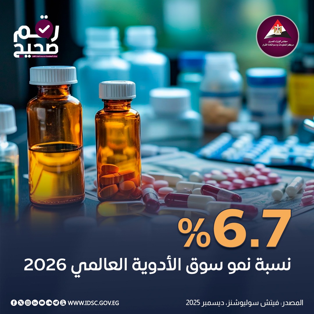 من المتوقع أن ينمو سوق الأدوية العالمية بنسبة 6.7% بالقيمة الدولارية في عام 2026، مقارنة بعام 2025، لتصل إجمالي مبيعات سوق الأدوية إلى نحو 1.98 تريليون دولار، كما يُتوقع أن تسجل معظم الأسواق معدلات نمو مستقرة نسبيًّا خلال 2026.