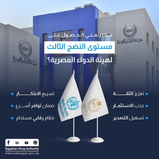 نشرت هيئة الدواء المصرية بيانا، عن حصولها على مستوى النضج الثالث من منظمة الصحة العالمية، حيث قالت في بيانها إن هذا إنجاز استراتيجي بارز، يعكس التزام الهيئة بتطبيق أعلى المعايير الدولية ويؤكد مكانتها الرائدة على المستويين الإقليمي والدولي، و تنعكس آثاره الإيجابية مباشرة على جودة الاقتصاد المصري.
