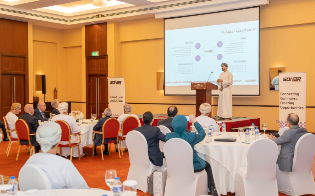 واستعرض الجانب العماني الفرص الاستثمارية المتاحة في تلك الصناعات، إلى جانب تسليط الضوء على حوافز الاستثمار بالمنطقة الحرة، وكذا استعراض مقومات ميناء صحار الذي يعد البوابة الرئيسية لعمليات الاستيراد والتصدير في سلطنة عمان، إذ يمر عبره أكثر من 80% صادرات وواردات عمان، إذ جذبت المنظومة المتكاملة في مجالات اللوجستيات والمعادن والبتروكيماويات والأغذية استثمارات تجاوزت 30 مليار دولار،