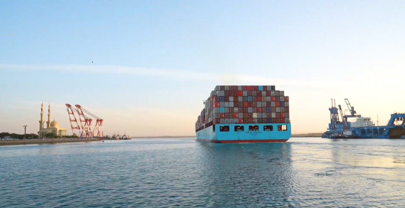 أول فيديو لعبور أكبر سفينة حاويات تابعة لـ«ميرسك» من قناة السويس