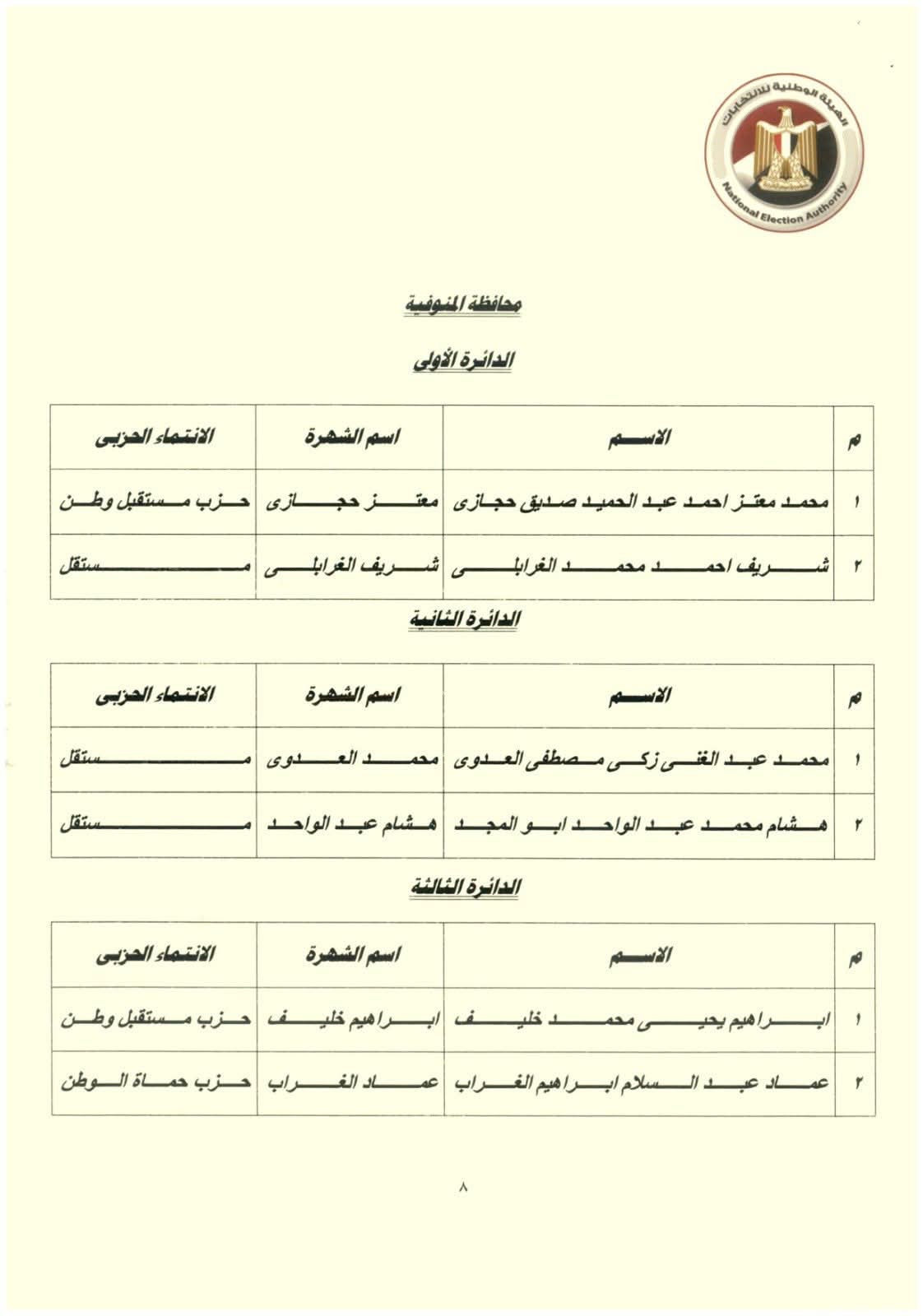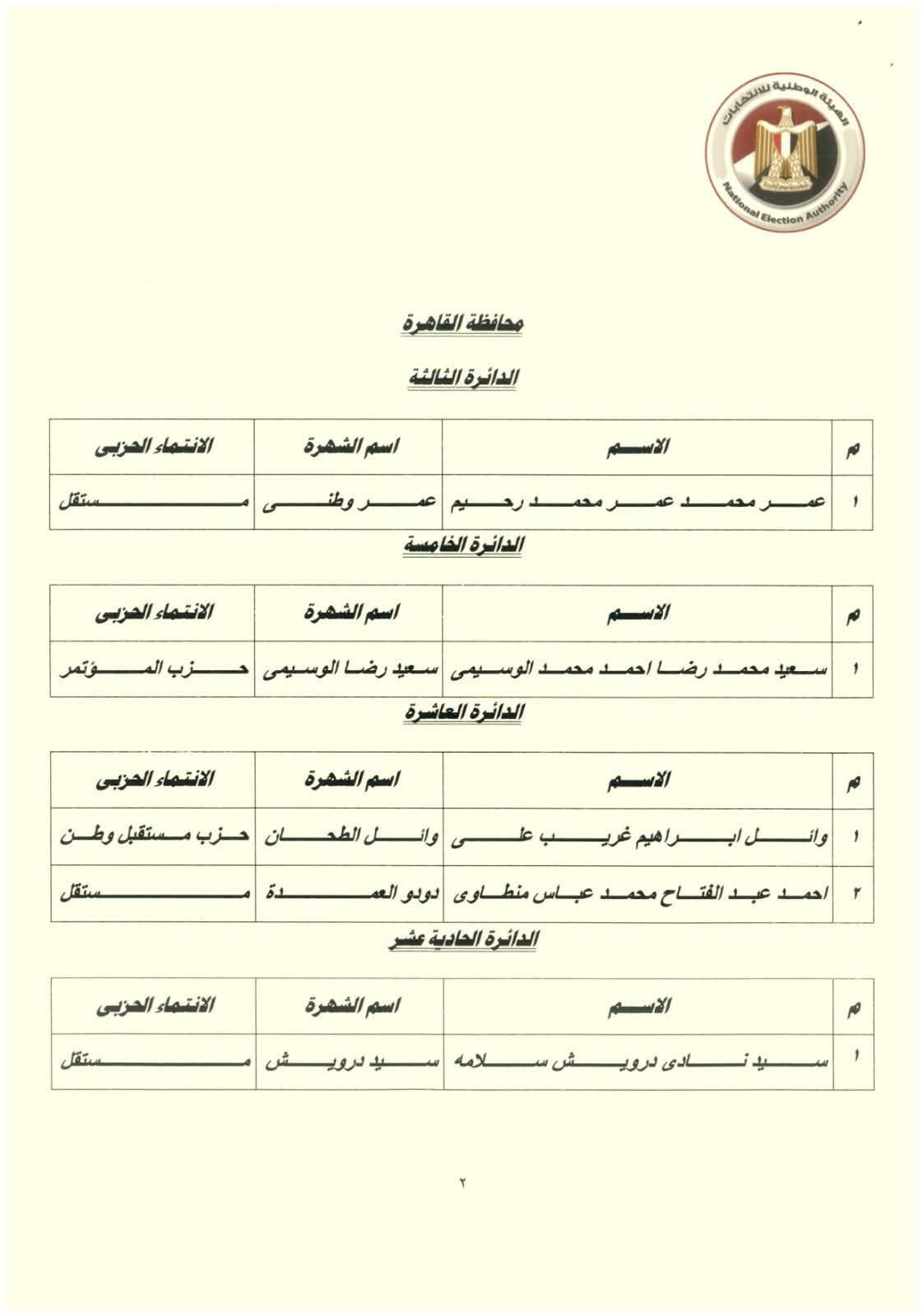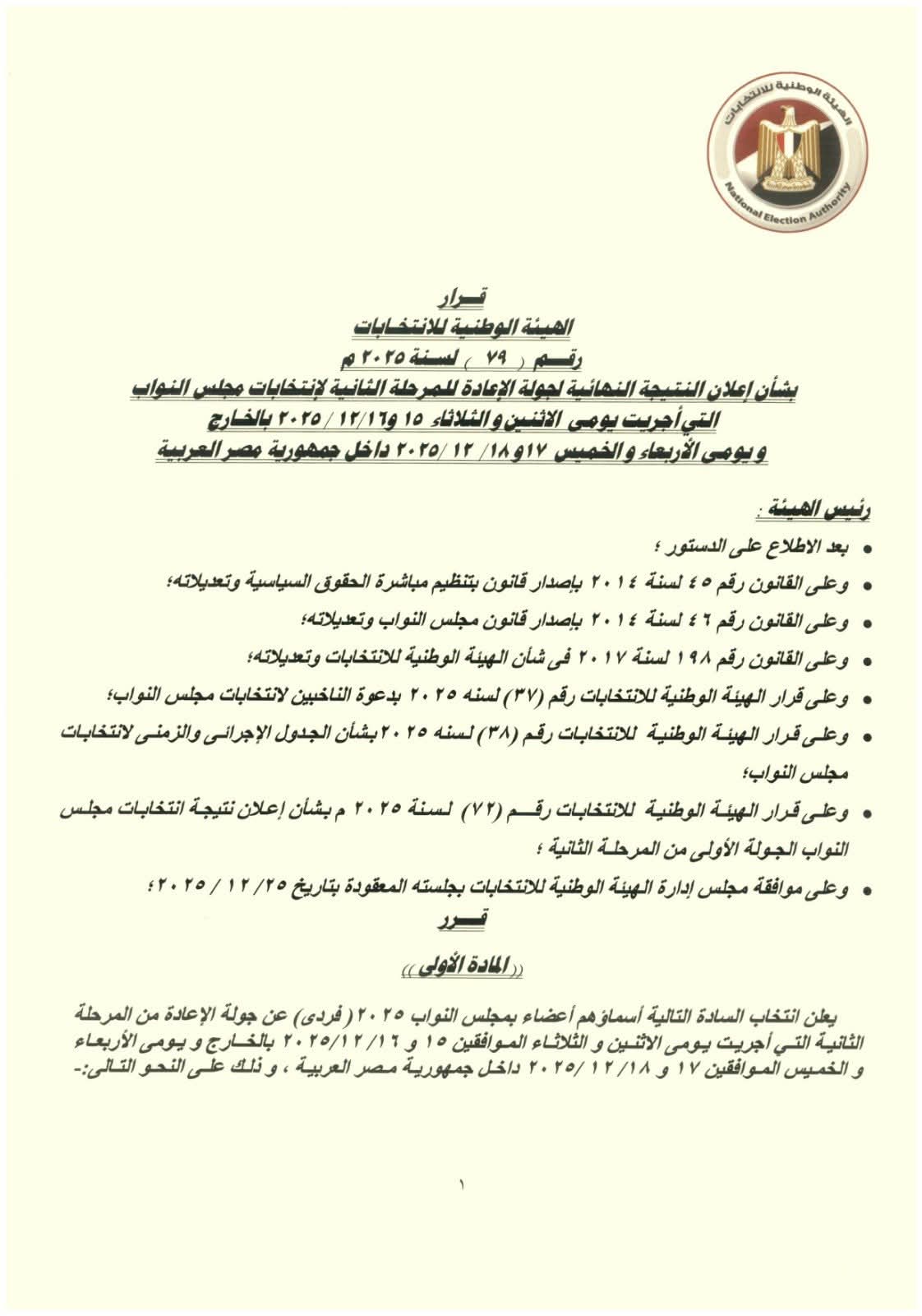 النتيجة الكاملة لإعادة المرحلة الثانية لانتخابات مجلس النواب 2025 (الأسماء)