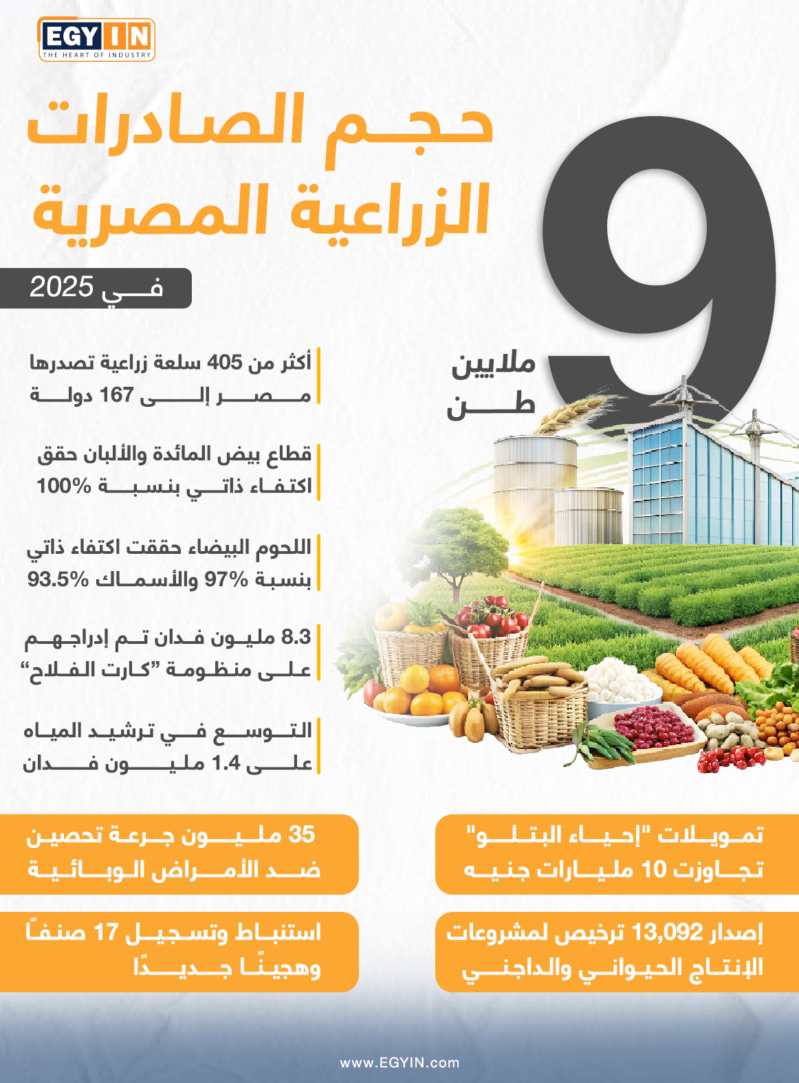 9 ملايين طن حجم الصادرات الزراعية المصرية في 2025 (انفوجراف)