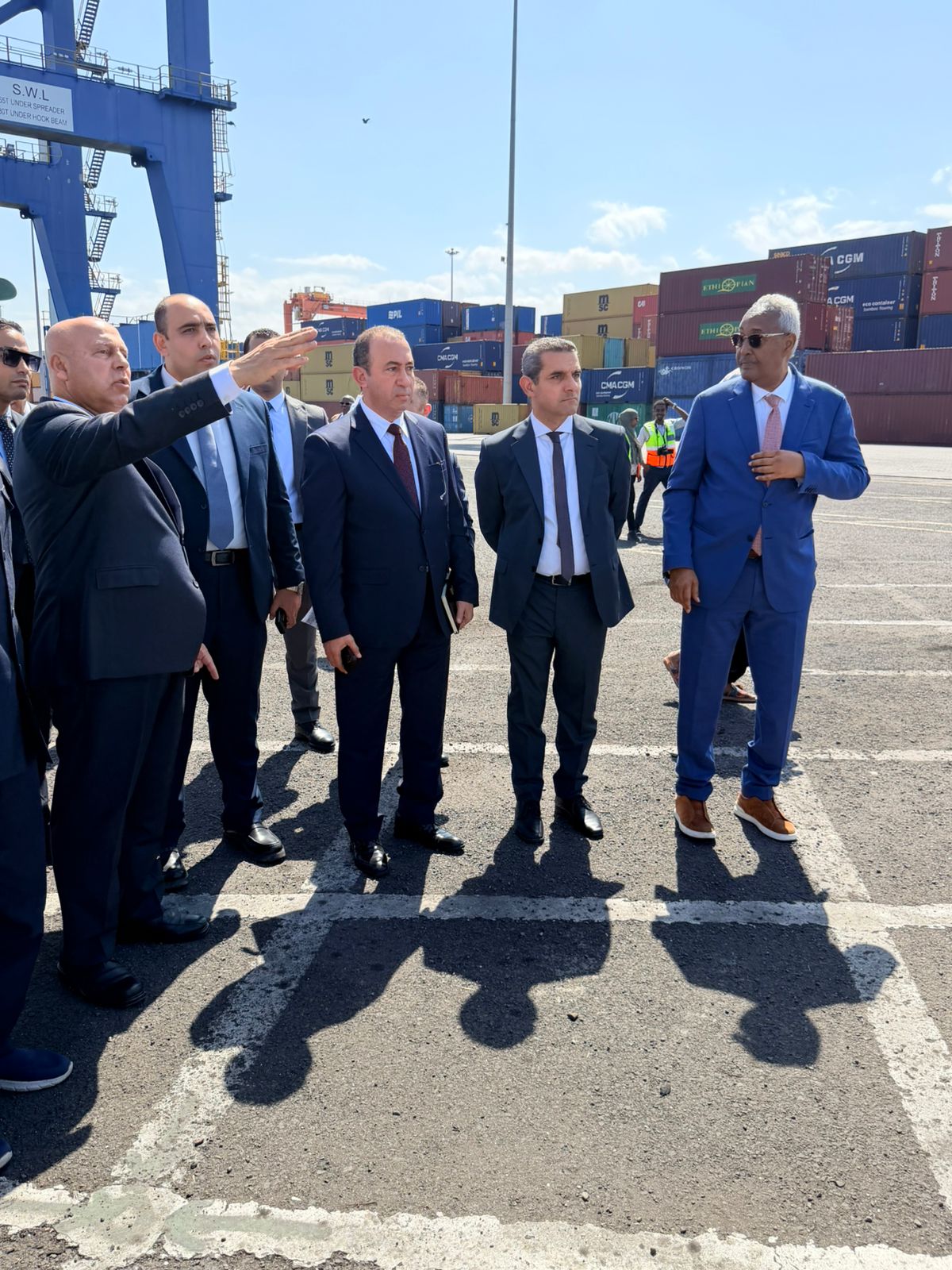 واستهلت الزيارة بعرض تقديمي تناول اختصاصات سلطة الموانئ والمناطق الحرة بجيبوتي، وأهم مشروعاتها ومبادراتها الاستراتيجية، أعقبه عقد اجتماع موسع ضم الجانبين المصري والجيبوتي، بحضور الدكتور إسماعيل عبد الغفار رئيس الأكاديمية العربية للعلوم والتكنولوجيا والنقل البحري، والمهندس محمد فتحي معاون وزير النقل للنقل البحري، إلى جانب رؤساء سبع شركات مصرية كبرى متخصصة في البنية التحتية ومشروعات الموانئ، من بينها: الشركة القابضة للنقل البحري والبري، الشركة القابضة للطرق والكباري، مجموعة السويدي، شركة إيديكس، شركة قاصد خير، شركة الرواد، وشركة مصر للتشييد.