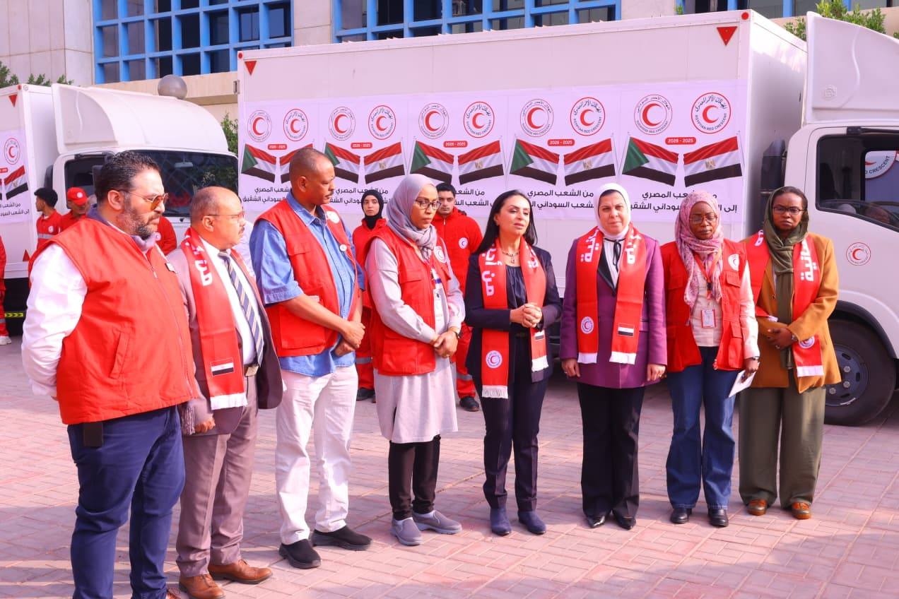 وزيرة التضامن تطلق أول قافلة مساعدات برية من الهلال الأحمر المصري إلى السودان