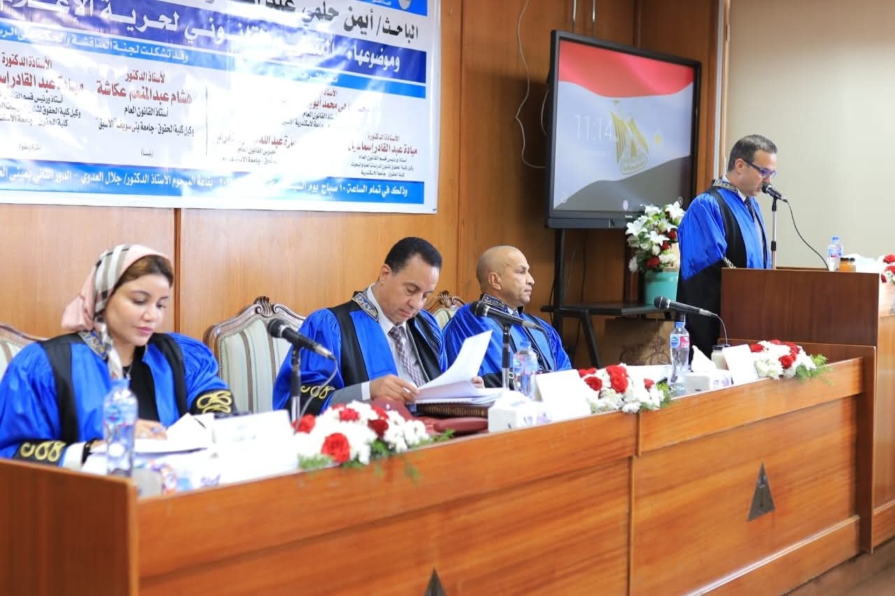 حصل الباحث اللواء أيمن حلمي عبد المقصود السمان، على درجة الدكتوراة فى القانون من جامعة الإسكندرية، وذلك عن الرسالة المقدمة من الباحث تحت عنوان "التنظيم القانوني لحرية الإعلام".