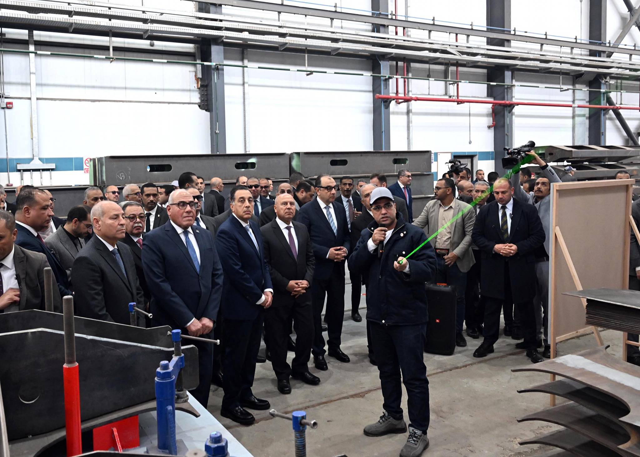 تفقد رئيس الوزراء معروضات المصنع من "بوجي" مترو الأنفاق، وعربات الباور، والسيارات المزودة بقلاب، كما توقف باهتمام أمام نموذج لـ "كونتينر فصل تعليمي" مجهز بالكامل، مشيداً بجودة التشطيبات المحلية، وأشار المسؤولون إلى أن المصنع يشهد حالياً تصنيع مفصلات الشاسيه الصندوقي وتجميع بوليستر السيارات القلاب بأيدي مهندسين وفنيين مصريين تم تدريبهم دولياً.