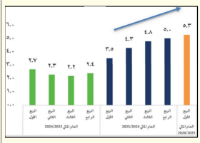 أعلنت وزارة المالية، ارتفاع معدل نمو الناتج المحلي الإجمالي لمصر خلال الربع الأول من العام المالي 2025/2026، مسجلًا 5.3% مقارنة بمعدل نمو بلغ 3.5% خلال الربع الأول من العام المالي السابق، مدفوعًا بتسارع الأداء الذي شهده عدد من القطاعات ذات الإنتاجية المرتفعة.