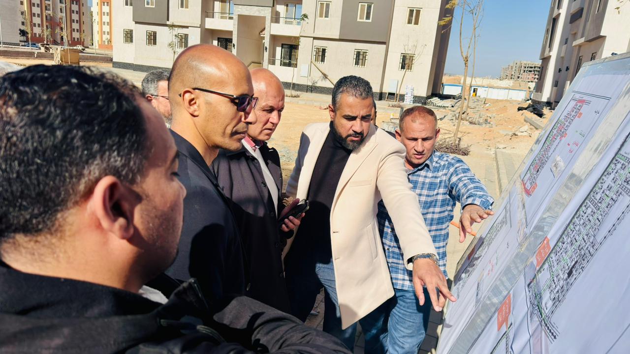 وكانت المحطة التالية من الجولة تفقد مشروع ترفيق المرحلة السادسة للإسكان، و الذي يضم 125 عمارة بإجمالي نحو 3000 وحدة سكنية، حيث تابعوا نسب الإنجاز الفعلية وموقف تنفيذ الأعمال على أرض الواقع.