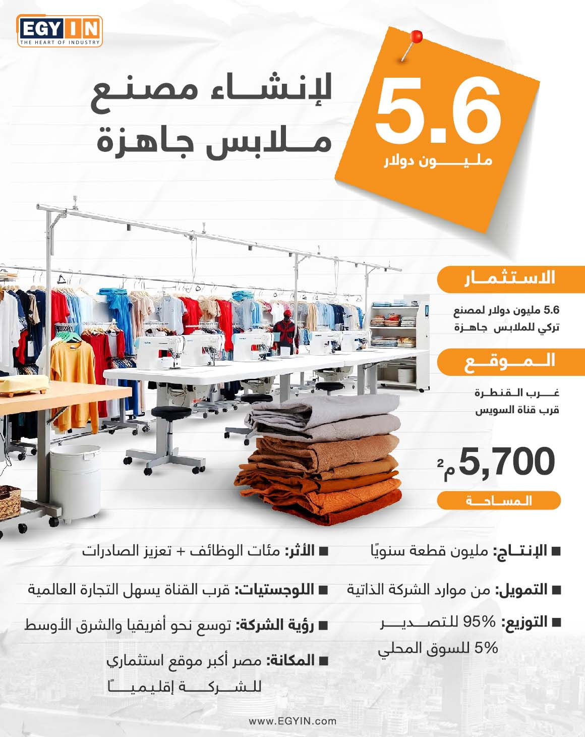 5.6 مليون دولار لإنشاء مصنع ملابس جاهزة بالقنطرة غرب (إنفو جراف)