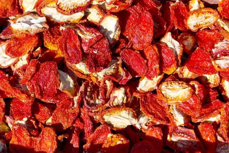 تُستخدم الطماطم المجففة في تحضير الصلصات والمقبلات، خاصة في الأطباق الإيطالية مثل البيتزا والمكرونة، فهي تمنح نكهة مركزة وطعمًا غنيًا مقارنة بالطماطم الطازجة، مما يجعلها مفضلة لدى الطهاة وشركات المطاعم.