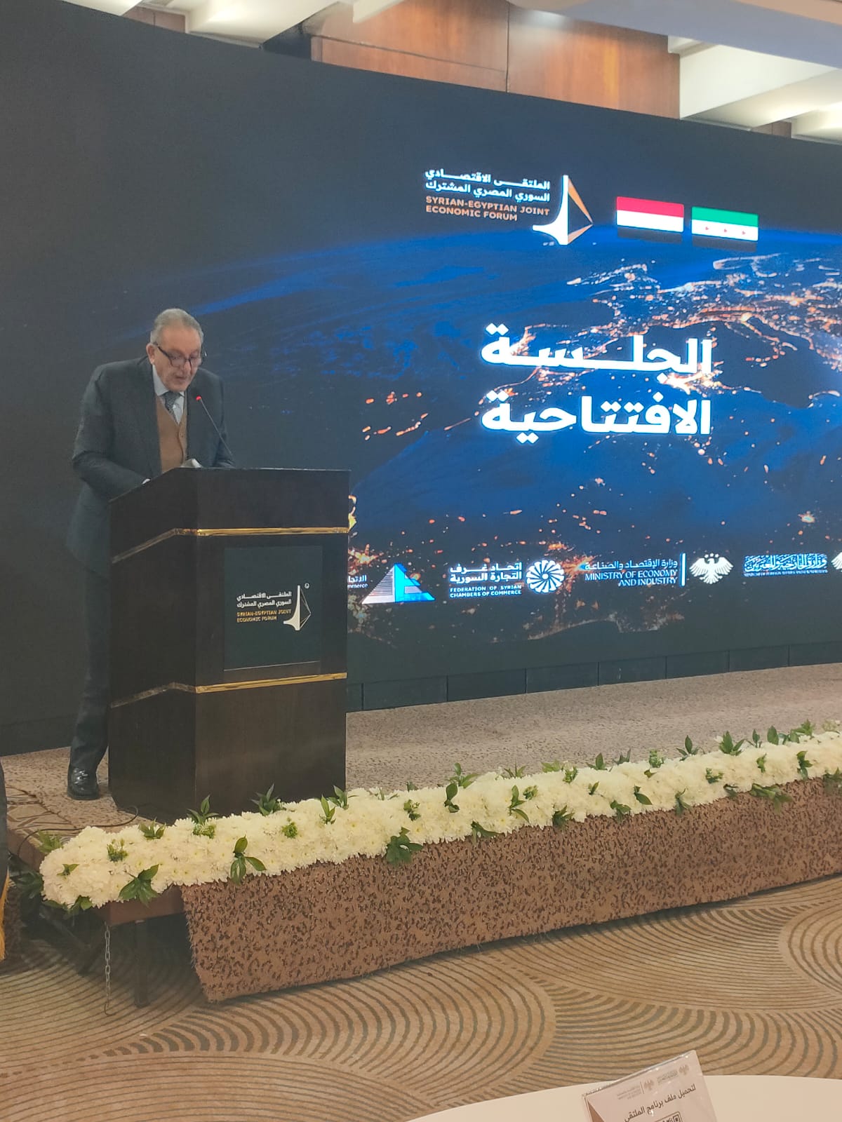 عقد اليوم الملتقى الاقتصادي السوري-المصري بحضور قيادات الحكومة السورية ورجال الأعمال وغرف التجارة من كلا البلدين، حيث ألقى أحمد الوكيل، رئيس الاتحاد العام للغرف التجارية المصرية، كلمة رحب فيها بالحضور ونقل تحيات أكثر من 6 ملايين منتسب للغرف التجارية المصرية، مؤكدًا عمق العلاقات التاريخية بين مصر وسوريا.