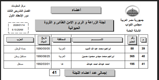 41 عضوًا ينضمون للجنة الزراعة والري والأمن الغذائي والثروة الحيوانية في مجلس النواب