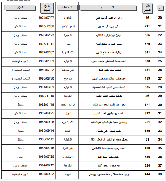 وتضم لجنة الصناعة 39 عضوًا وهم: