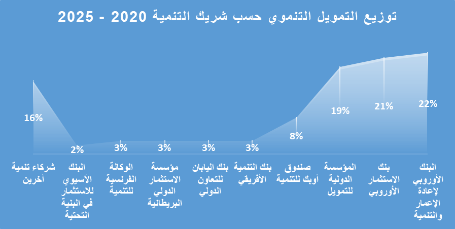 توزيع التمويل التنموي حسب شريك التنمية 2020 - 2025