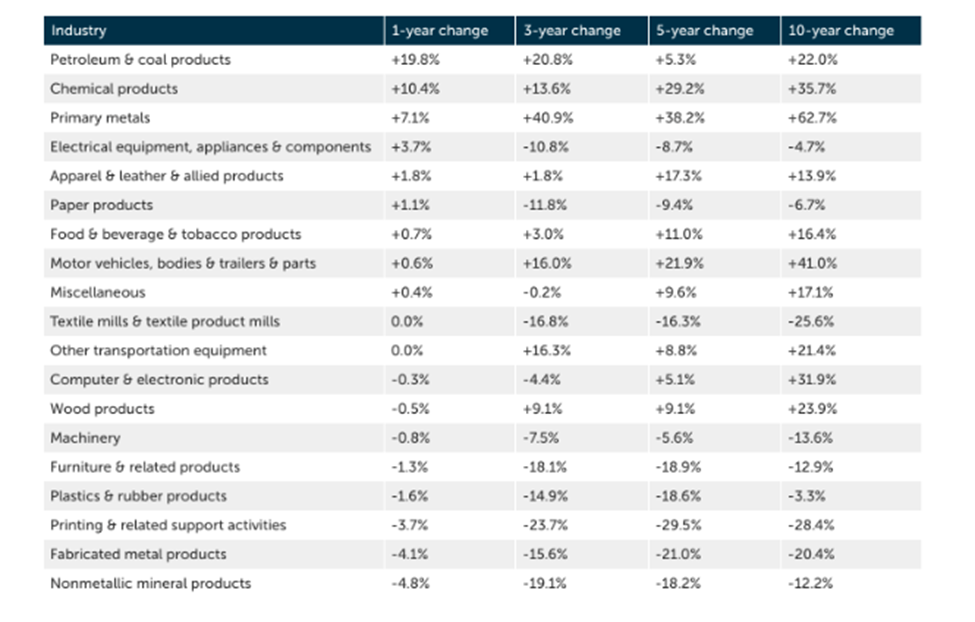 أسرع قطاعات التصنيع نموًا في الولايات المتحدة خلال السنوات الأخيرة