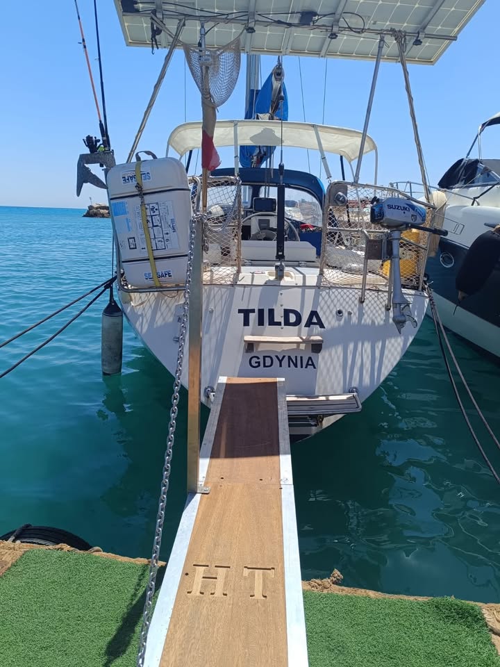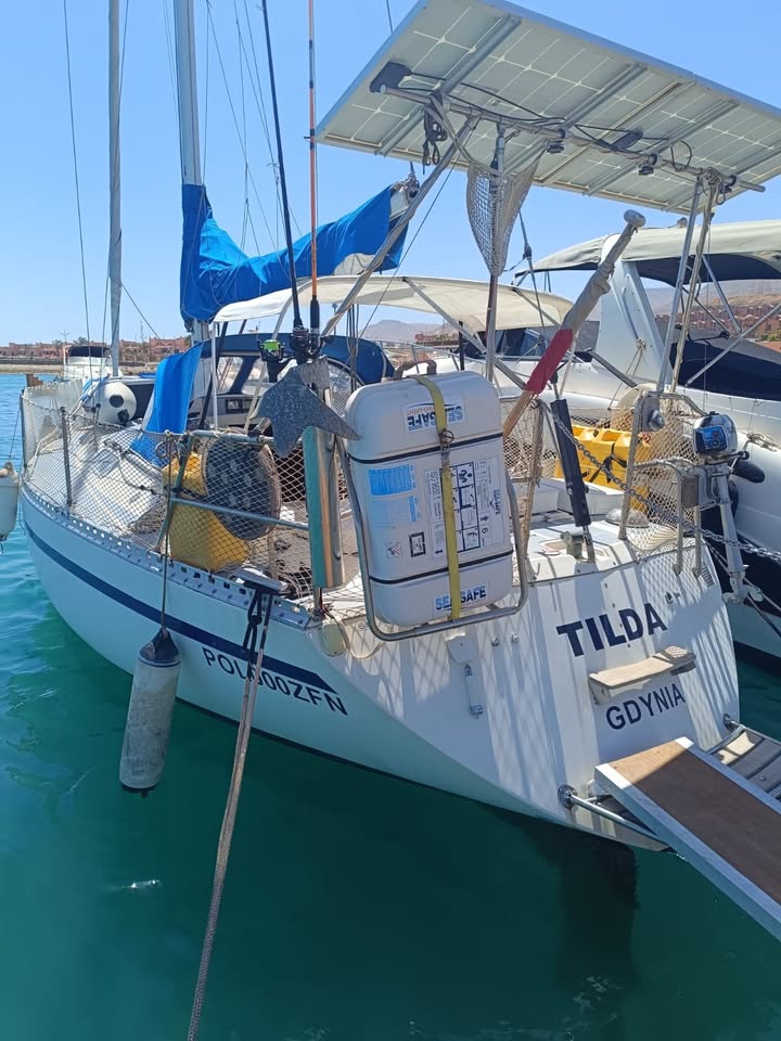 اليخت من طراز Comfortina 32 موديل 1980، بطول 32 قدمًا، ومسجل بالعلم البولندي، وقد تم سداد جميع الرسوم الجمركية ورسوم الإرساء في مصر لعام 2026. ويتميز بمحرك فولفو بنتا MD11C بقوة 23 حصانًا، مع محرك إضافي S-drive 110، ومقصورة معيشة مجهزة لستة أشخاص، تشمل طاولة، موقد وفرن، ثلاجة، دش، نظام مياه مضغوطة، ومرحاض بحري حديث، إضافة إلى أنظمة طاقة شمسية وبطاريات متطورة لضمان راحة كاملة أثناء الإبحار.