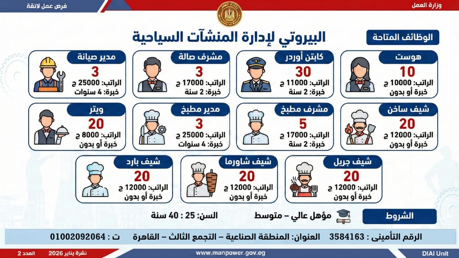 وتتميز النشرة الحالية بتنوع استثنائي في التخصصات المطلوبة، حيث تمتد من الوظائف الهندسية والإدارية كأخصائيي التسويق والموارد البشرية ومهندسي الاتصالات، وصولًا إلى المهن الفنية والحرفية وقطاعات الفندقة والأمن، بما في ذلك وظائف "الليدي جارد" للإناث، كما شددت الوزارة على أن جميع هذه الفرص تخضع لرقابة صارمة لضمان الالتزام الكامل بتطبيق الحد الأدنى للأجور، مع توفير التغطية التأمينية والخدمات الصحية اللازمة، لضمان حقوق العاملين وتوفير حياة كريمة لهم.