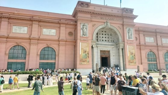 شهدت بوابات المتحف المصري بالتحرير، صباح اليوم الجمعة، أول أيام عيد الأضحي المبارك، إقبالًا كبيرًا من السائحين ا